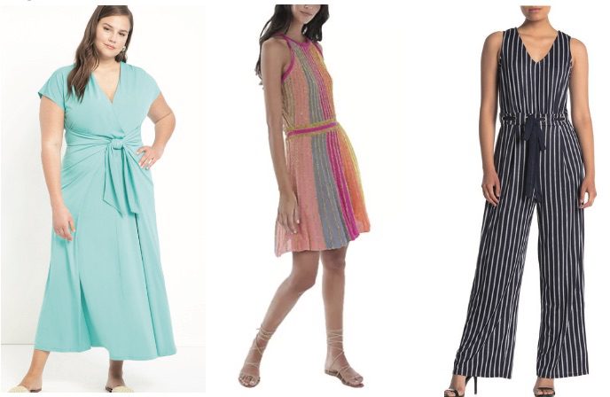 These prints create the illusion of a slimming figure through the use of color blocking and vertical designs. A vertical block of color will draw the eye up making us appear taller and, in most cases, slimmer. Add a vertical detail such as vertical stripes and the elongating effect is even stronger! A solid band of color such as in this aqua dress can also create that slimming and elongating illusion. If you are on the shorter side, add some heels in a similar color intensity to your hem or your skin tone to lengthen even more. Also, notice that the plus size maxi dress (picture located under nature prints), although a nature print, causes the eye to look vertically up and down, based on how the print is aligned on the dress. This also causes a visually slimming effect.